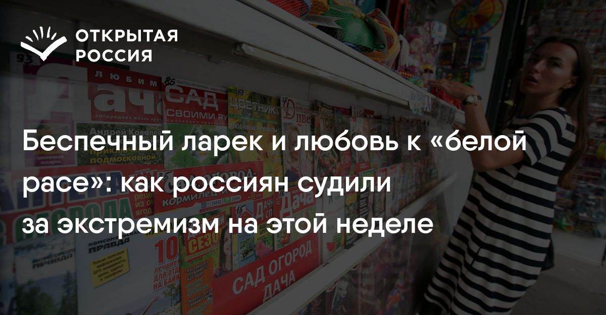 Беспечный ларек и любовь к «белой расе»: как россиян судили за экстремизм на этой неделе